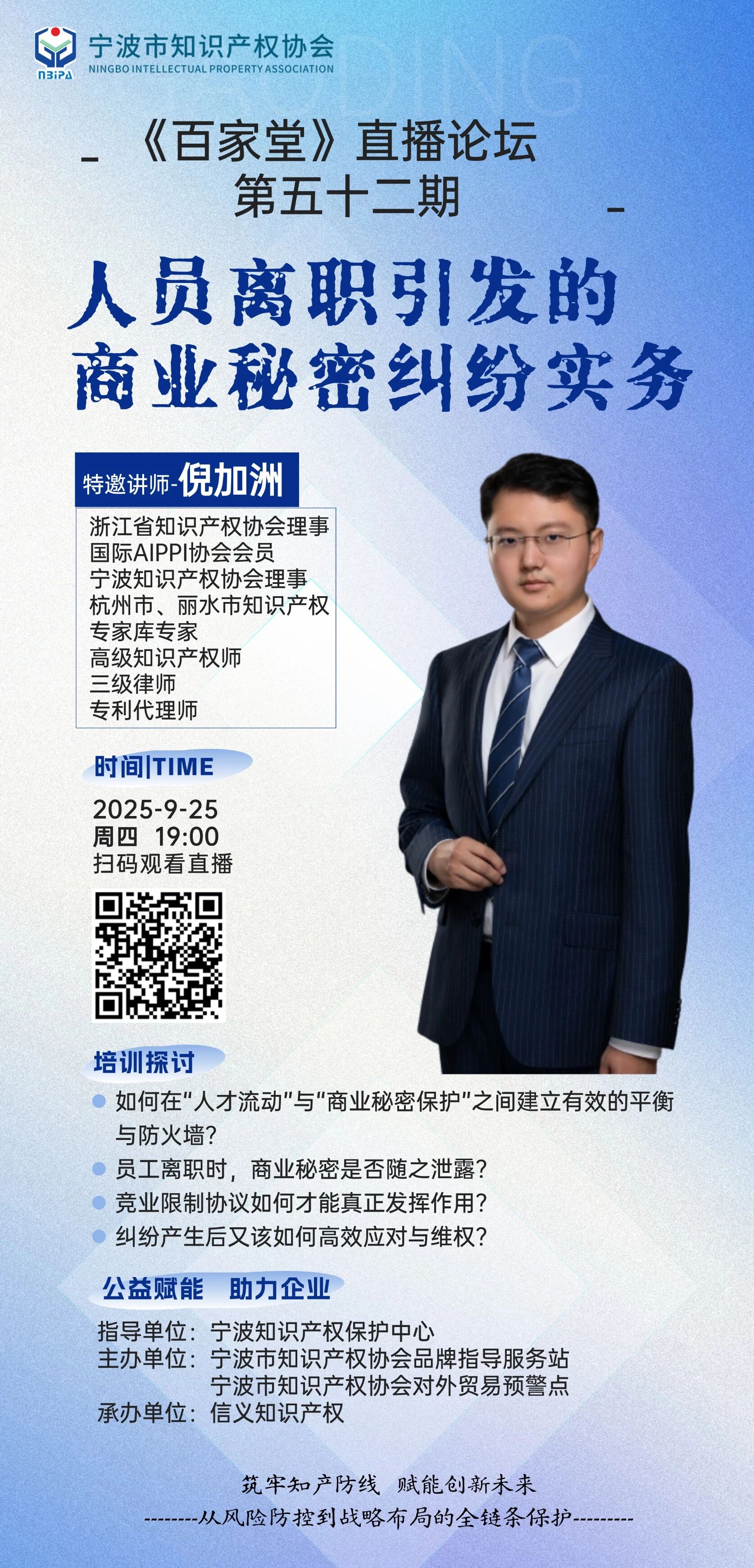 直播预告|下周四晚七点第五十二期百家堂直播《人员离职引发的商业秘密纠纷实务》