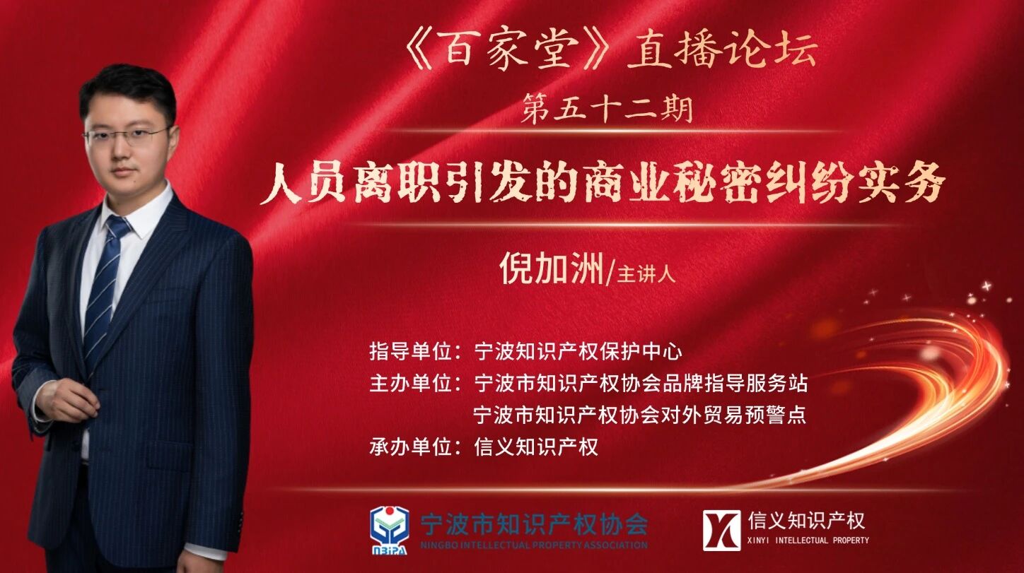 > >> 直播预告|下周四晚七点第五十二期百家堂直播《人员离职引发的商业秘密纠纷实务》