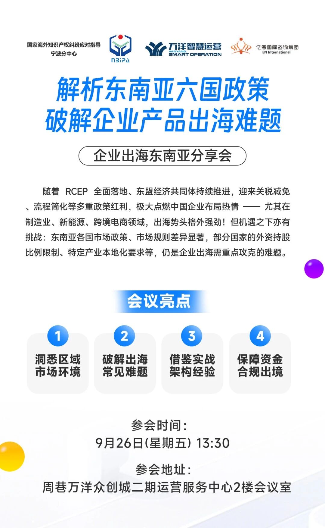 【活动通知】解析东南亚六国投资政策 破解企业产品出海难题企业出海东南亚分享会