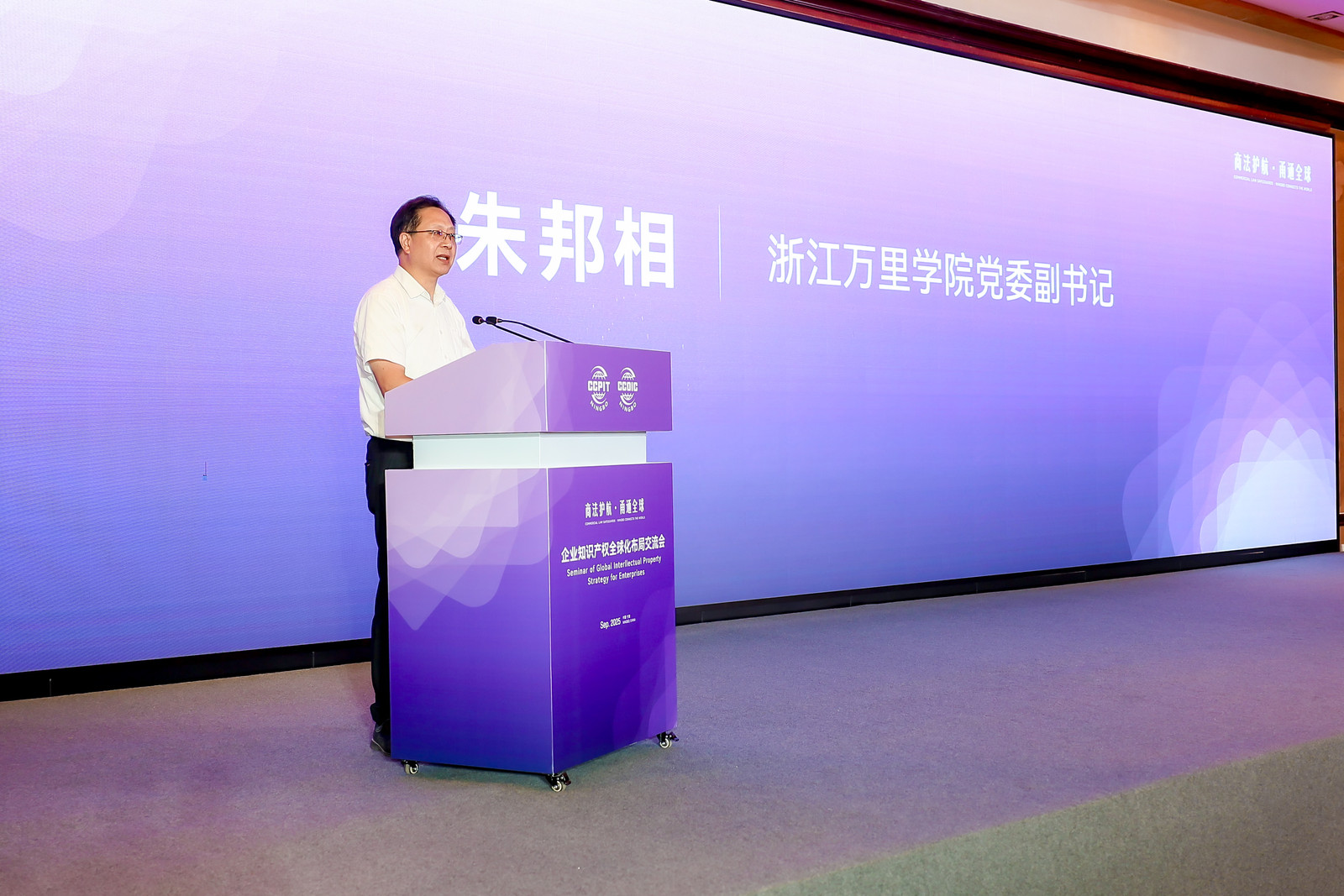 为助力我市企业更好地应对“出海”过程中的知识产权挑战,精准布局全球知识产权战略,有效防控海外知识产权风险,9 月 25 日,由宁波市贸促会(宁波国际商会)联合浙江万里学院(宁波知识产权学院)共同主办的企业知识产权全球化布局交流会顺利召开。宁波市知识产权协会作为支持单位,全程深度参与,积极搭建交流平台,为活动的成功举办提供有力支撑。我市110余名工贸企业代表、律师代表及法律服务机构人士齐聚一堂,共话企业知识产权全球化发展策略。