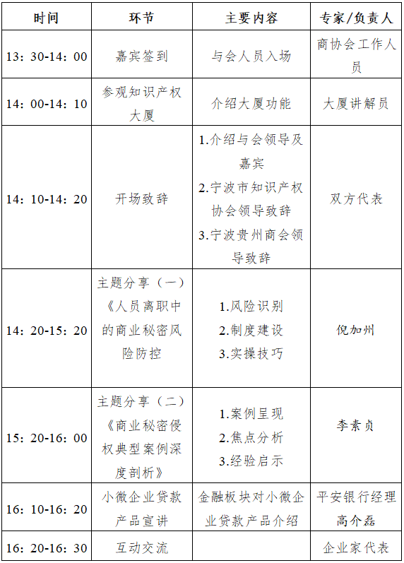 为帮助企业管理者、人力资源及法务负责人精准识别人才流动中的商业秘密风险,构建行之有效的内部防控体系,宁波知识产权保护中心、宁波贵州商会和宁波市知识产权协会共同举办本次“企业商业秘保护实物讲座”。