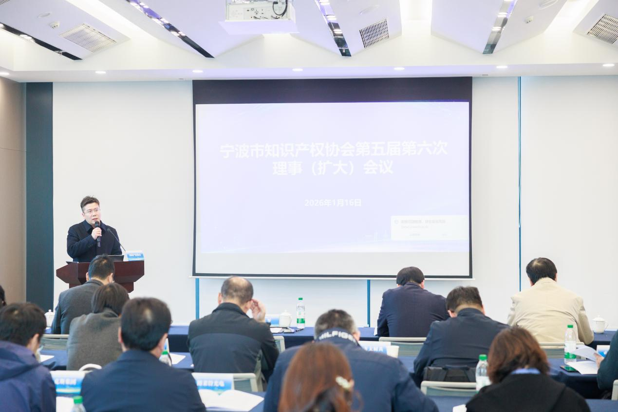 春潮涌动处,奋进正当时。为深入贯彻知识产权强国建设战略部署,凝聚行业发展共识,赋能宁波经济高质量转型,宁波市知识产权协会第五届第六次理事(扩大)会议于2026年1月16日在会长单位浙江天皓控股有限公司江北区坤投大厦2楼会议室隆重召开。协会理事以上单位代表、监事长、党支部书记及特邀宁波知识产权保护中心领导齐聚一堂,60余名会员及列席代表全程参与,共同为宁波知识产权事业高质量发展建言献策,会议在务实高效的氛围中圆满落幕。