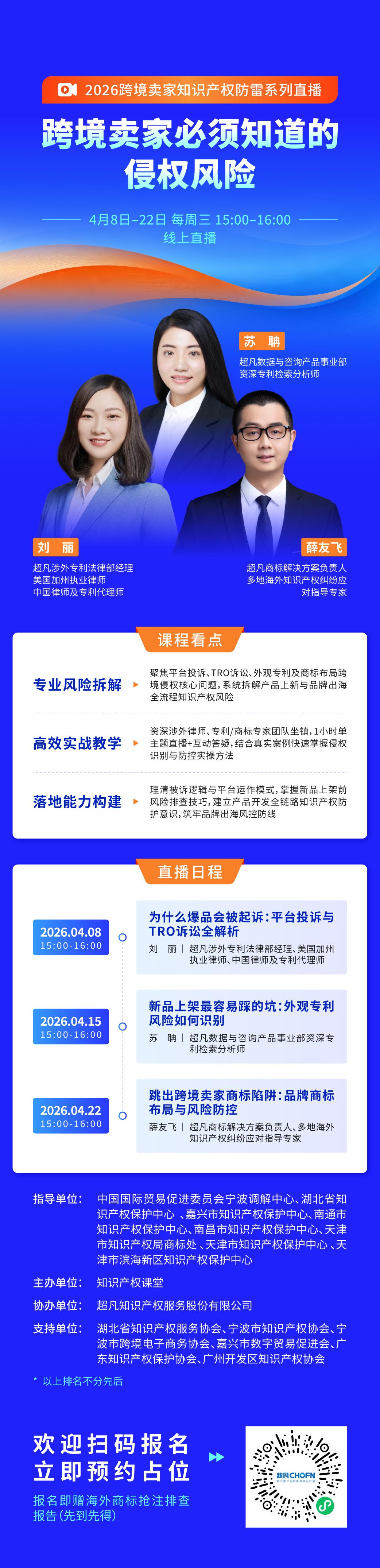 2、欢迎在报名表单中留言:你在跨境出海过程中遇到过哪些知识产权难题?直播互动答疑环节将优先选取典型问题进行解答。