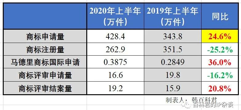 比较惊讶的是商标申请量,印象中是第一次半年破400万,看来全年上800万不是梦...