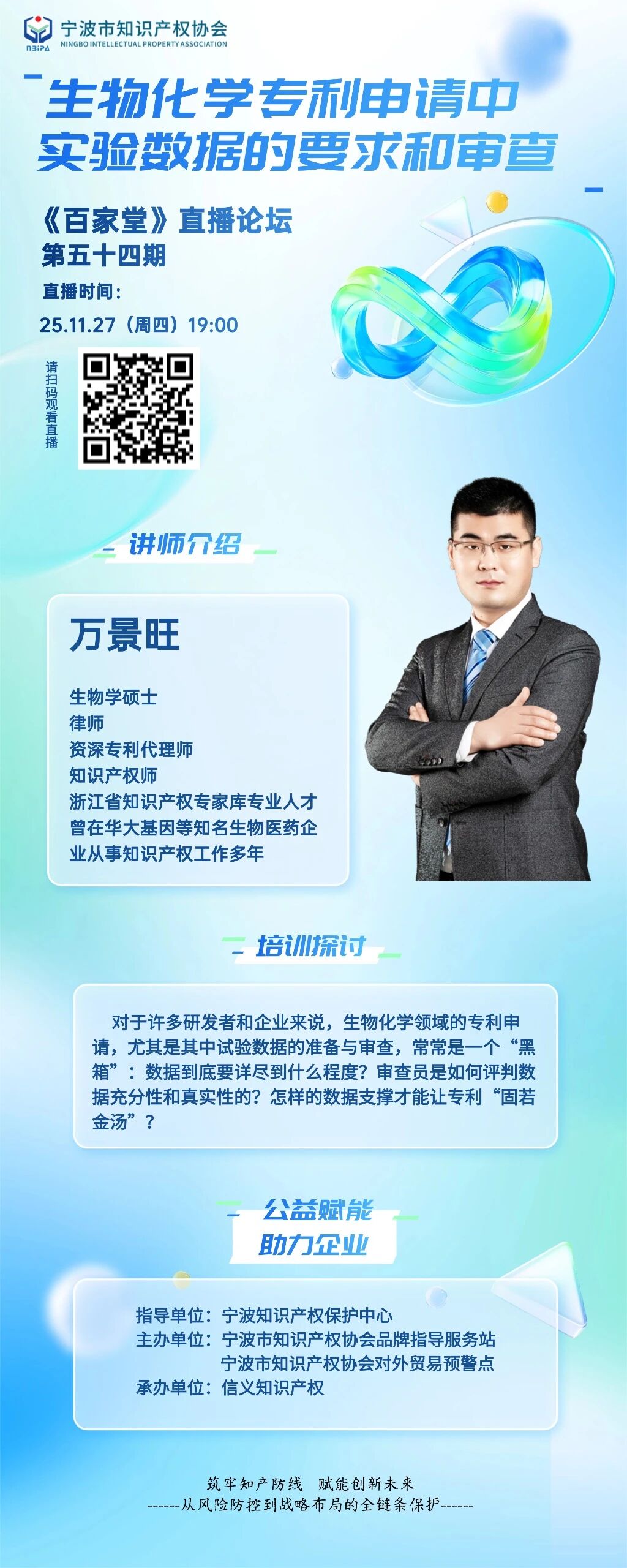 “公益赋能,助力企业”,宁波市知识产权协会《百家堂》线上直播论坛第五十四期今晚七点重磅开讲!