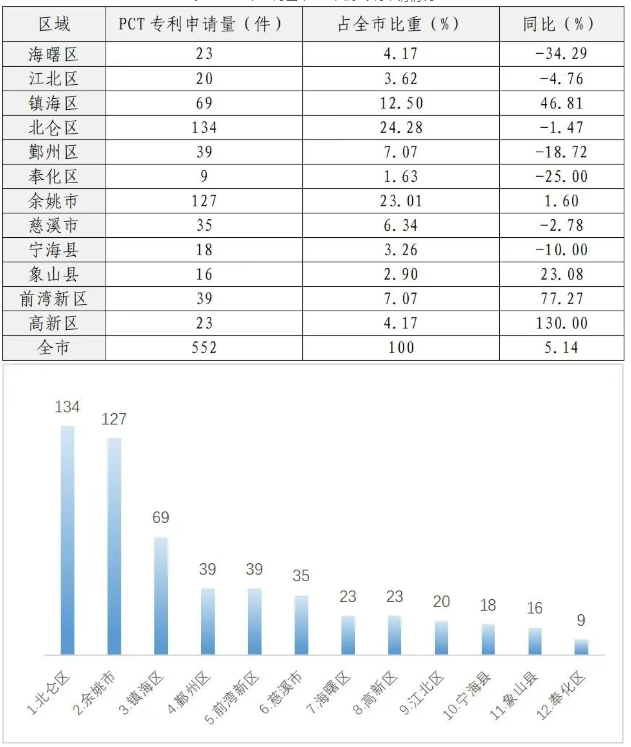 2025年1-10月,全市PCT国际专利申请量552件,居全省第二位,同比增长5.14%。